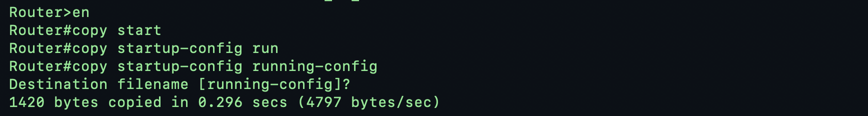Router#copy startup-config running-config <- Copy Config เดิมกลับมาก่อน กด Enter ไปเลย
