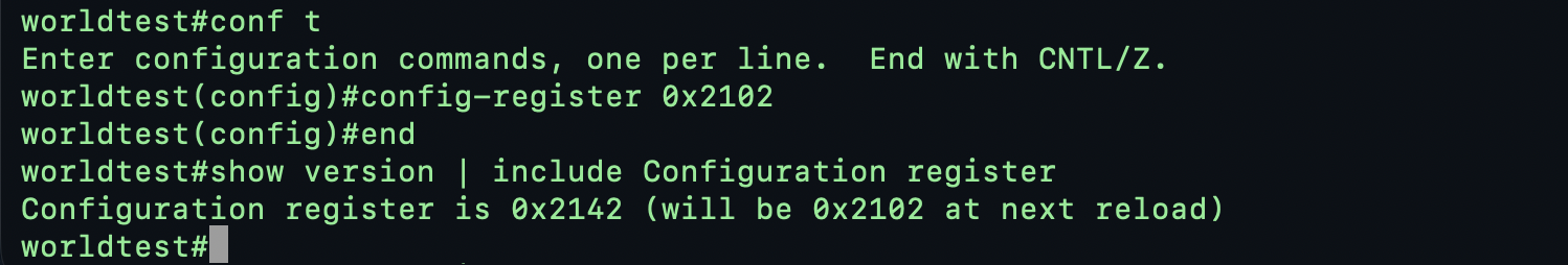 ตั้งค่า config-register กลับเป็นปกติ (สำคัญมาก)